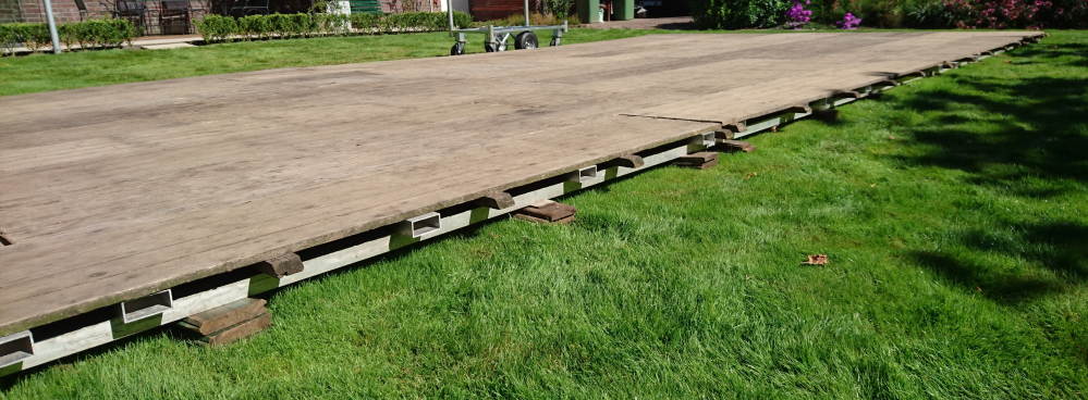 De huurprijs is per m², indien u de vloerdelen door ons wilt laten bezorgen dan dient u er rekening mee te houden dat hiervoor transportkosten worden berekend en dat de vloerdelen naast de wagen worden gelost tot de locatie waar onze wagen kan komen, het verder weg uitlossen van de vloerdelen is niet in de huurprijs inbegrepen.