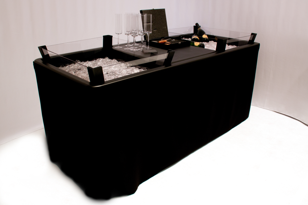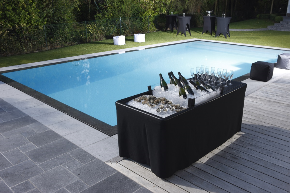 Tafel is ook heel geschikt om flessen wijn of champagne gekoeld te presenteren.