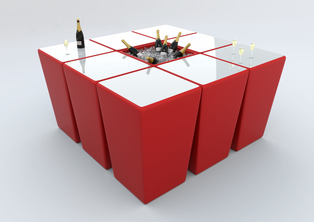 U kunt voor de conic serie ook RGB LED verlichting op accu bijbestellen, het tafelblad is dan helemaal verlicht, bij de witte serie worden de zijkanten van de tafel ook verlicht.
