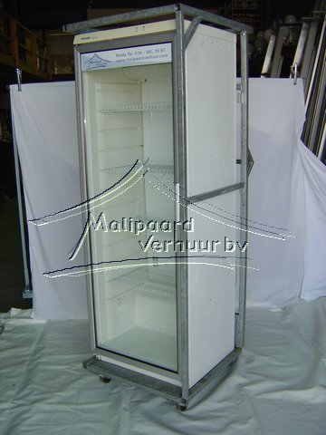 Koelkast staat in een frame op wielen waardoor deze dus zeer makkelijk verplaatst kan worden.