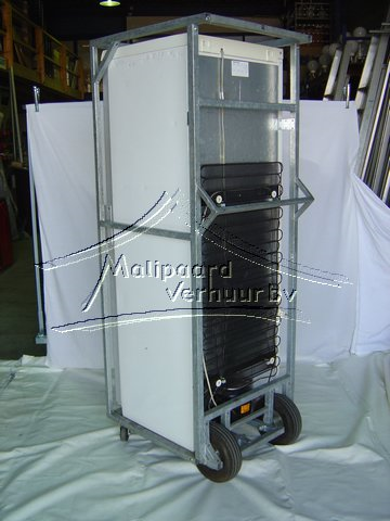Verrijdbare koelkast staat op wielen