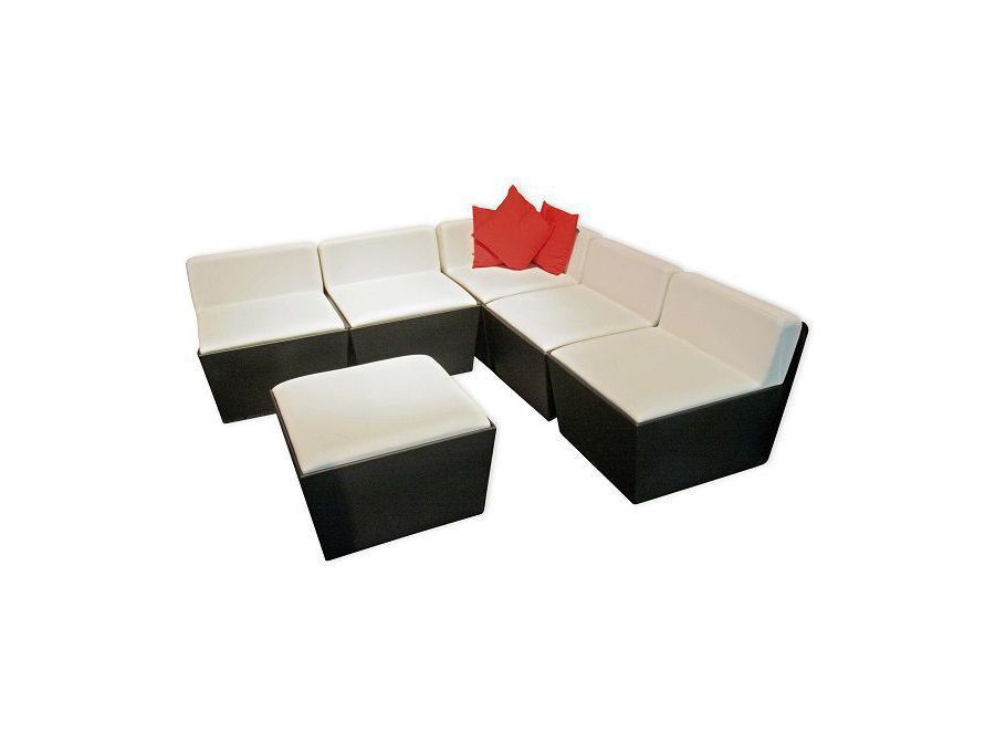 Loungefauteuil conic zwart met wit lederen hoekleuning