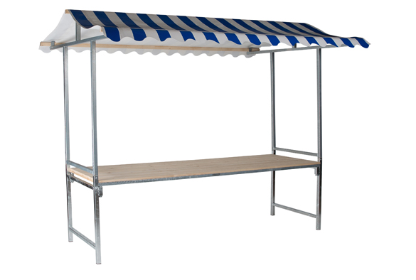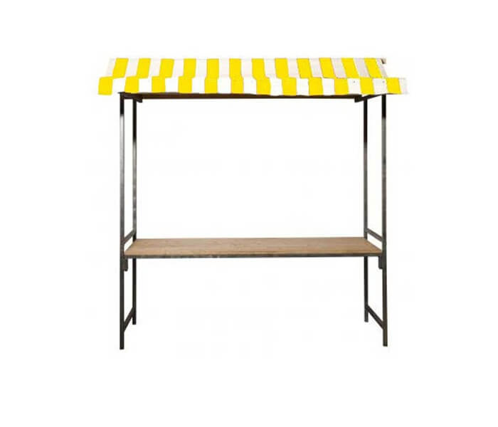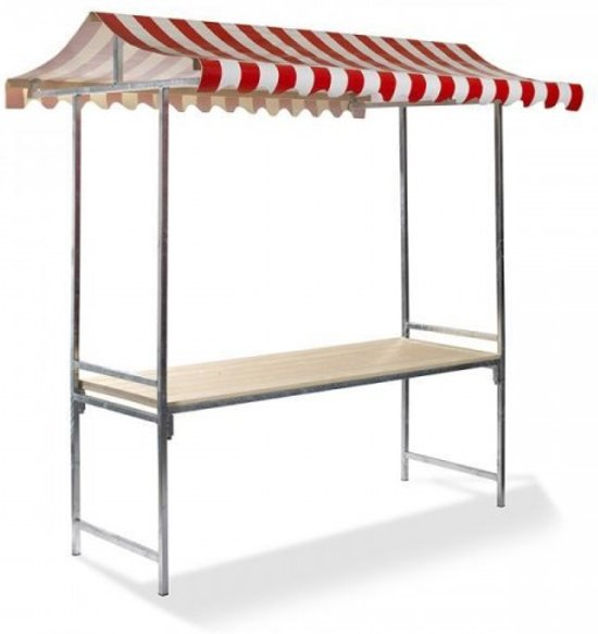 Marktkraam 200 x 70 cm. met luifel geel-wit gestreept
