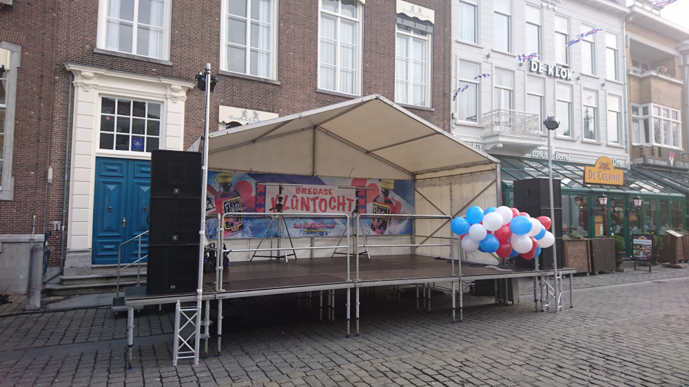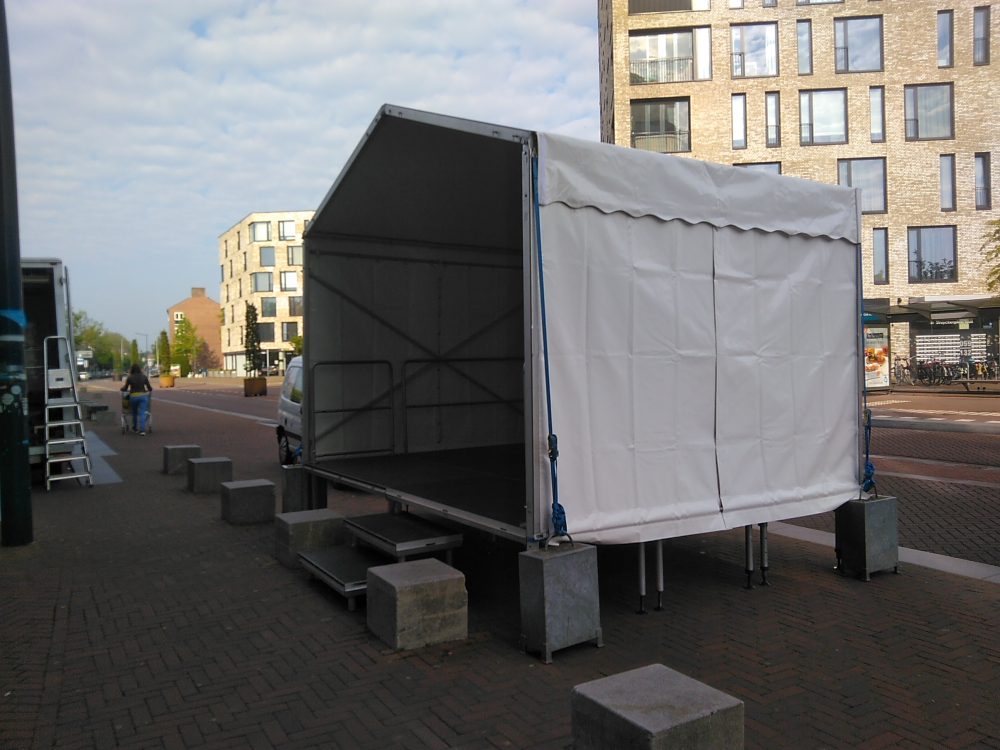 Podium wordt altijd door ons op- en afgebouwd, het is niet mogelijk om dit af te komen halen en/of zelf op- en af te bouwen.