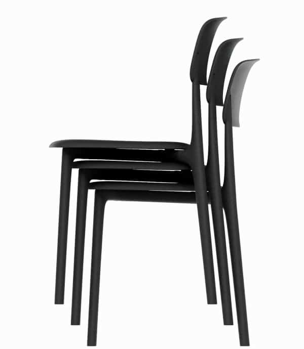 Door de gebogen zitting en rugleuning zit deze stoel verrassend comformtabel.