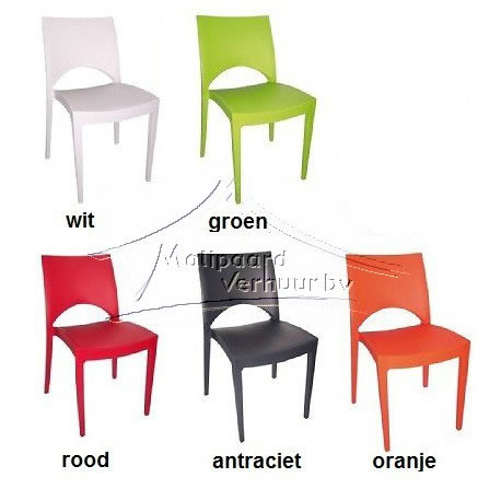 Deze stoel is gemaakt van 100% polypropyleen en is zeer geschikt als terrasstoel, maar wordt ook veel gebruikt bij bruiloften en evenementen voor een mooie strakke uitstraling.